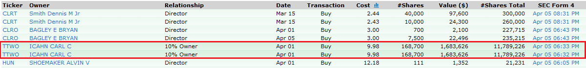Interesante el movimiento registrado en el banco Flagstar entre el día 31/3 y el 01/04 donde los principales accionistas de la Empresa compraron acciones a un precio de 50 centavos por acción, como lo registra la gente de Finviz: